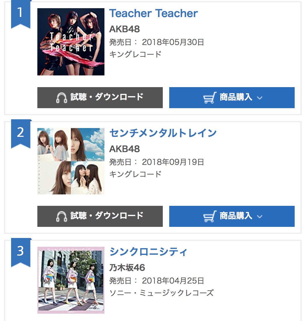 以下、昨年度のオリコンシングル年間ランキングです。
