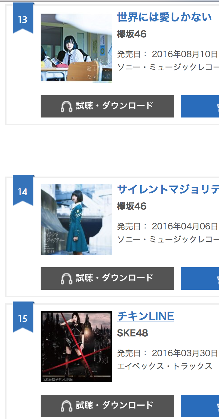 2016オリコン年間チャート5